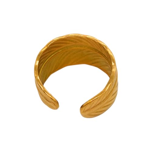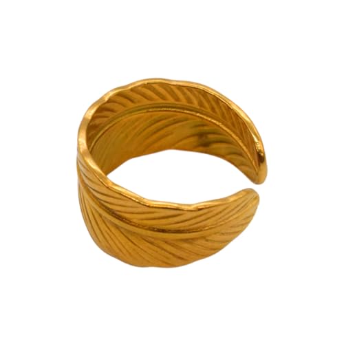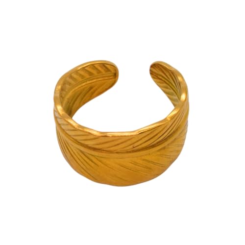 Generic - خاتم للنساء من الستانلس ستيل بتصميم ريش، مقاس واحد - ذهبي FA349