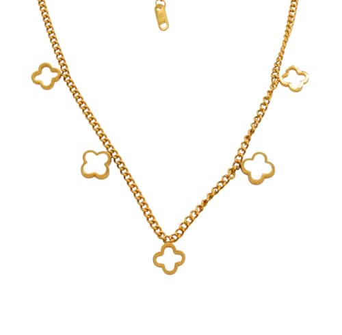 Generic - عقد من الستانلس ستيل بخمس قطع متدلية للنساء - ذهبي