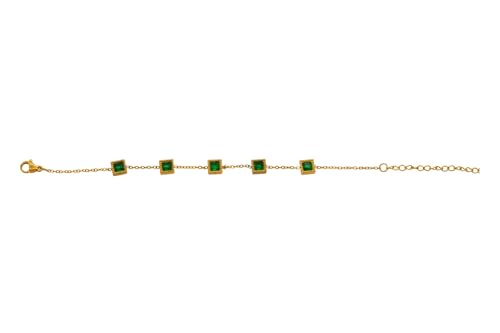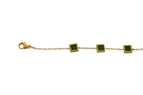 Generic - سوار للنساء من الستانلس ستيل بخمس احجار خضراء مع مشبك لوبستر، مقاس واحد - ذهبي FA117