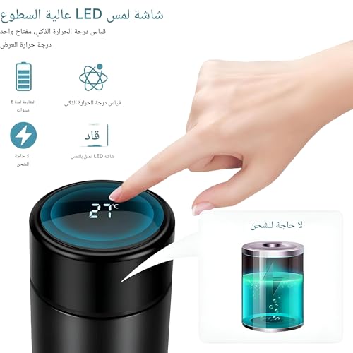 - زجاجة مياه ذكية مع شاشة LED تعمل باللمس. ببساطة اضغط على الشاشة لمعرفة درجة الحرارة في الداخل. لا تقلق بشأن الحفاظ على مشروب بارد أو بارد أو حار الآن. وأفضل ما في الأمر هو أنه لا يوجد شاحن، لأنه دائمًا ما يكون مدرجًا للطيران.