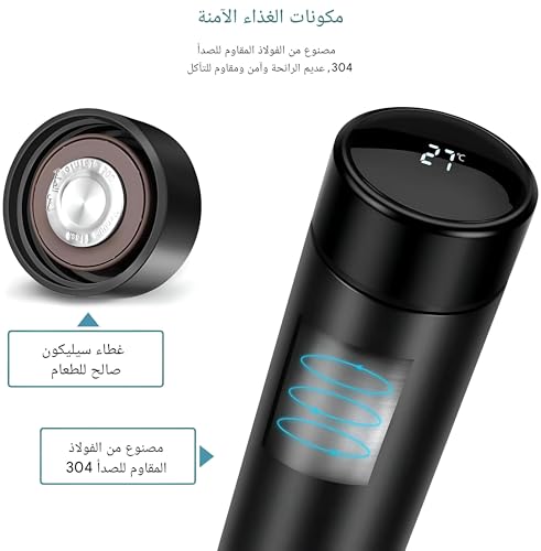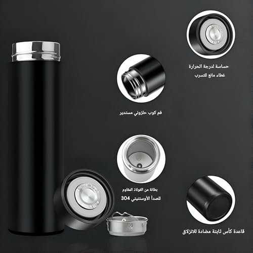 Generic - ترمس حراري من الفولاذ المقاوم للصدأ، زجاجة مياه كبيرة سعة 500 مل بمقياس ذكي لدرجة الحرارة وعزل بتفريغ الهواء للحفاظ على المشروبات في درجات حرارة مرغوبة (قطعة واحدة).