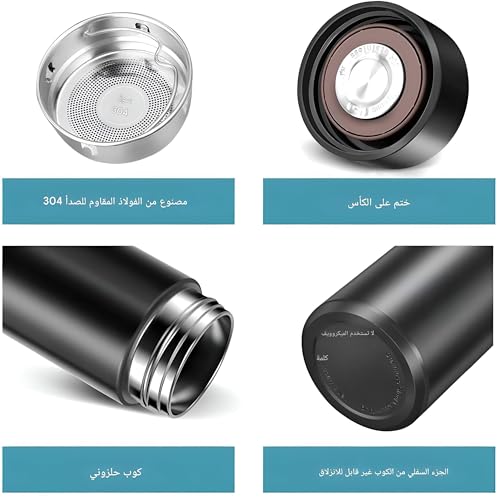 - الجودة: ترمس خفيف الوزن من الفولاذ المقاوم للصدأ عالي الجودة يحافظ على المشروبات الباردة والساخنة لمدة 24 ساعة. يحتوي الغطاء على 100% من السيليكون المشترك الذي يضمن لك الاستخدام الآمن والصحي. تم اختبار البطارية لتدوم أكثر من 8 سنوات من الاستخدام اليومي. خالية من البيسفينول ايه، بدون ألوان، غير قابلة للتلاشي أو البيضاء. لا يتأكسد، لا يتآكل، متين.