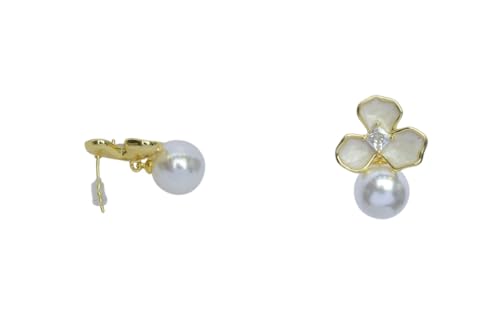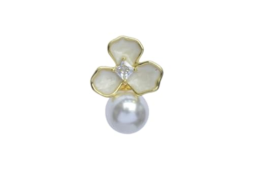 Generic - حلق صغير بريمة من الستانلس ستيل مزين بالزهور مع لؤلؤ للنساء - ذهبي