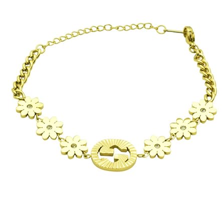 Generic - سوار من الستانلس ستيل مزين بالزهور والمتشابكة للنساء - ذهبي