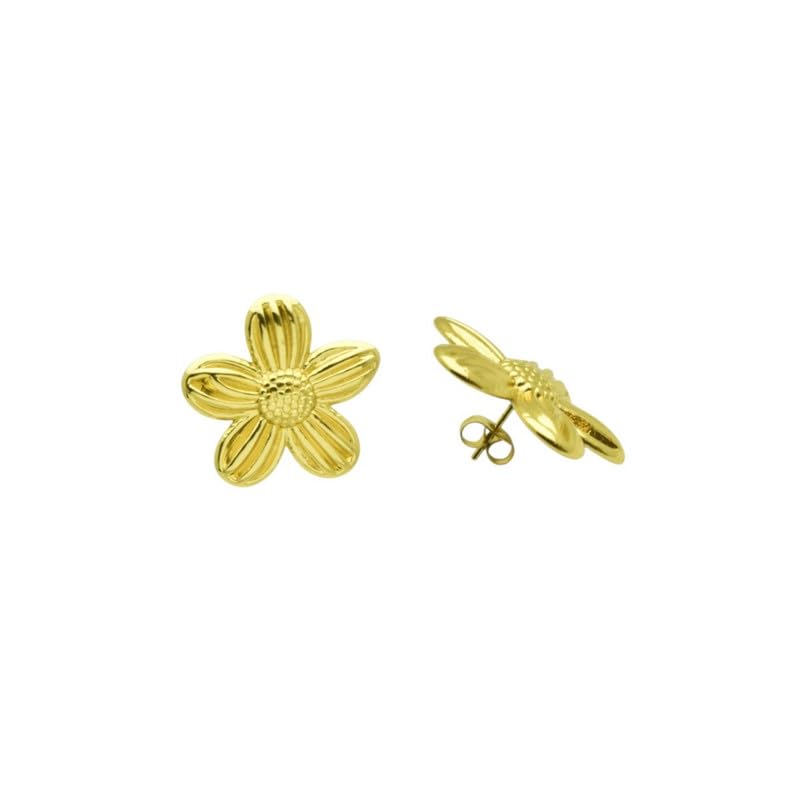 Generic - اقراط مرصعة بالزهور من الستانلس ستيل للنساء - لون ذهبي