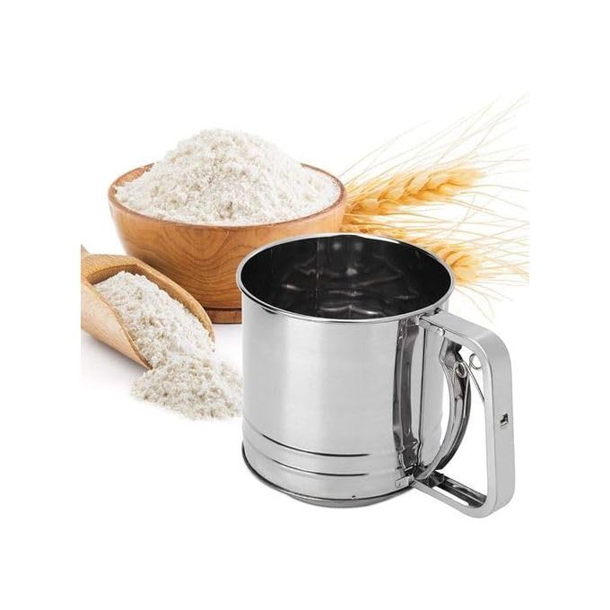 - السعة: منخل دقيق كبير من الستانلس ستيل بسعة 8 أكواب مثالي للخبز المنزلي والاستخدام الاحترافي في المطبخ