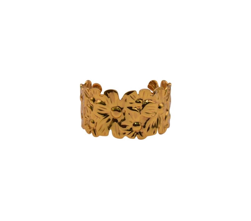 Generic - سوار عريض من الستانلس ستيل على شكل زهرة للبنات - برونزي - 766