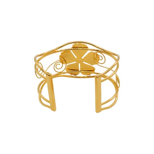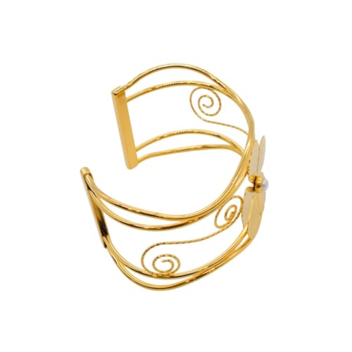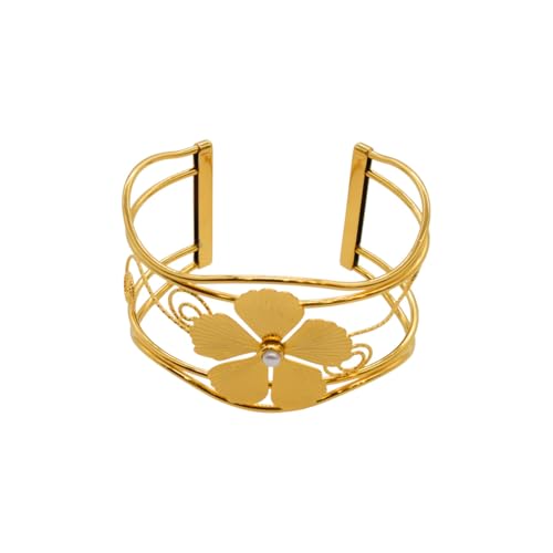 Generic - سوار للنساء من الستانلس ستيل بتصميم زهور، مقاس واحد - ذهبي