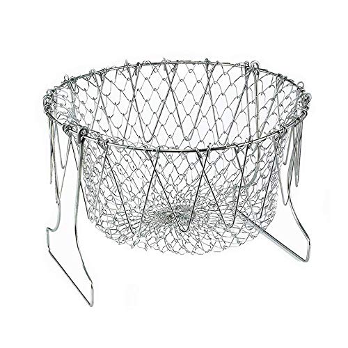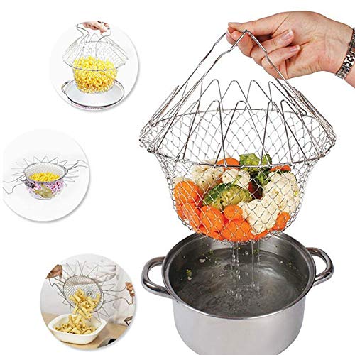 Generic - الفولاذ المقاوم للصدأ قابل للطي البخار شطف إجهاد مقلاة الشيف الفرنسي سلة سحرية شبكة مصفاة شبكة أدوات الطبخ