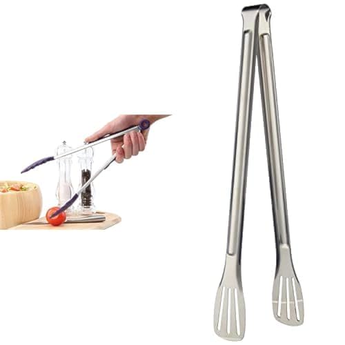 Generic - مقبض طعام من الستانلس ستيل مع طرف سيليكون - الوان مختلفة + مقبض تقديم مستطيل من الستانلس ستيل بمشبك للطعام - فضي