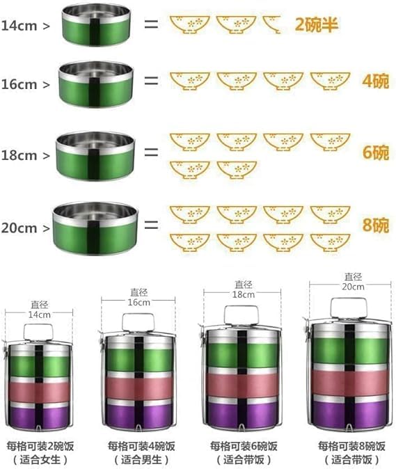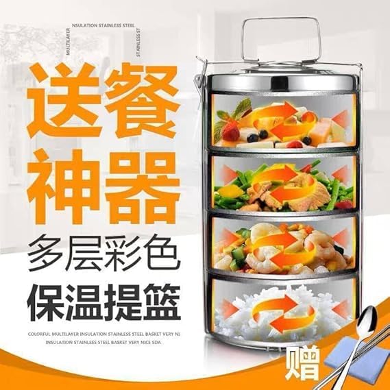 Generic - حاويات تخزين طعام من الستانلس ستيل، 4 طبقات - حامل طعام وجزء داخلي من الستانلس ستيل للاحتفاظ بالحرارة