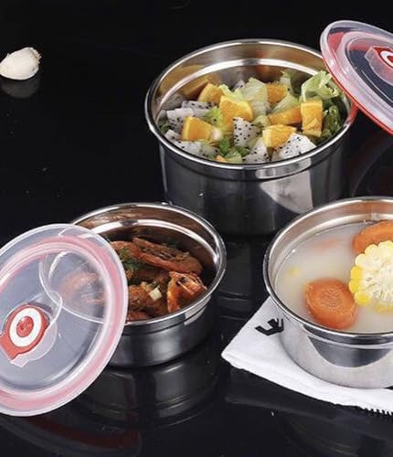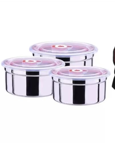- تتضمن المجموعة: ثلاث حاويات دائرية من الفولاذ المقاوم للصدأ بأحجام مختلفة مع أغطية مطابقة مانعة للتسرب لتلبية احتياجات التخزين المختلفة.