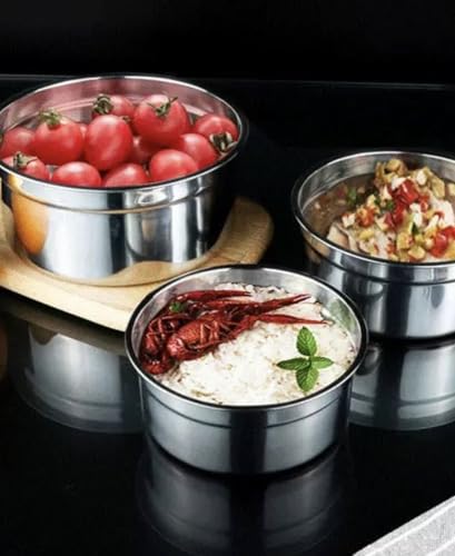 Generic - حاوية تخزين الطعام من الفولاذ المقاوم للصدأ، لانش بوكس قابل للتكديس من 3 طبقات مع أغطية محكمة الغلق، حامل تيفين معدني دائري لتحضير الوجبات