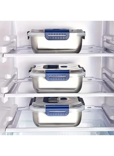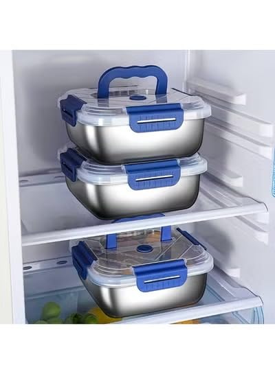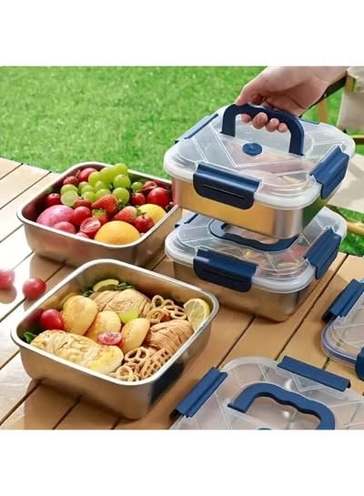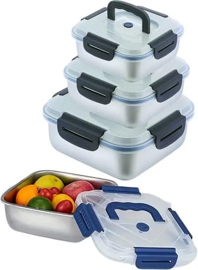 Happy Home - علب حفظ طعام بينتو من الفولاذ المقاوم للصدأ مع أغطية، قابلة للتكديس ولإعادة الاستخدام ومانعة للتسرب، للمطبخ والتخزين، 1.8 ل + 2.5 ل + 3.8 ل
