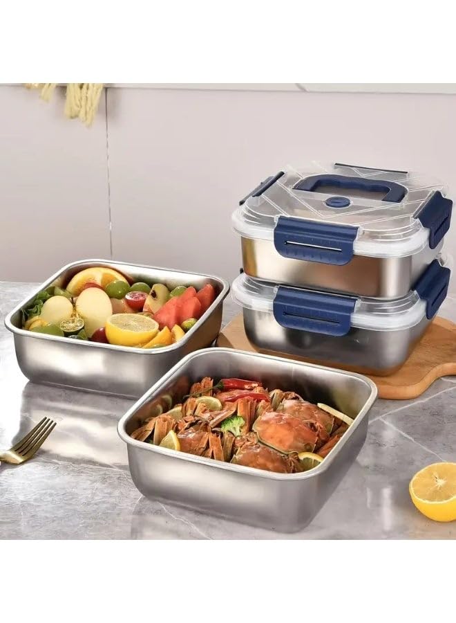Generic - حاويات تخزين طعام من الستانلس ستيل مع اغطية قفل كبس - حاويات امنة لاعداد الوجبات والفريزر، صناديق تخزين للمطبخ قابلة لاعادة الاستخدام - مجموعة من 3 قطع (1800 مل، 2500 مل، 3800 مل)