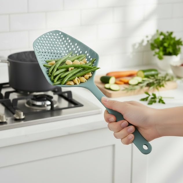 - تصميم مقبض مريح: مزود بمقبض مريح لقبضة وتحكم مريحين، مما يسمح بنقل الأطعمة الساخنة بأمان من وعاء إلى طبق بأقل جهد