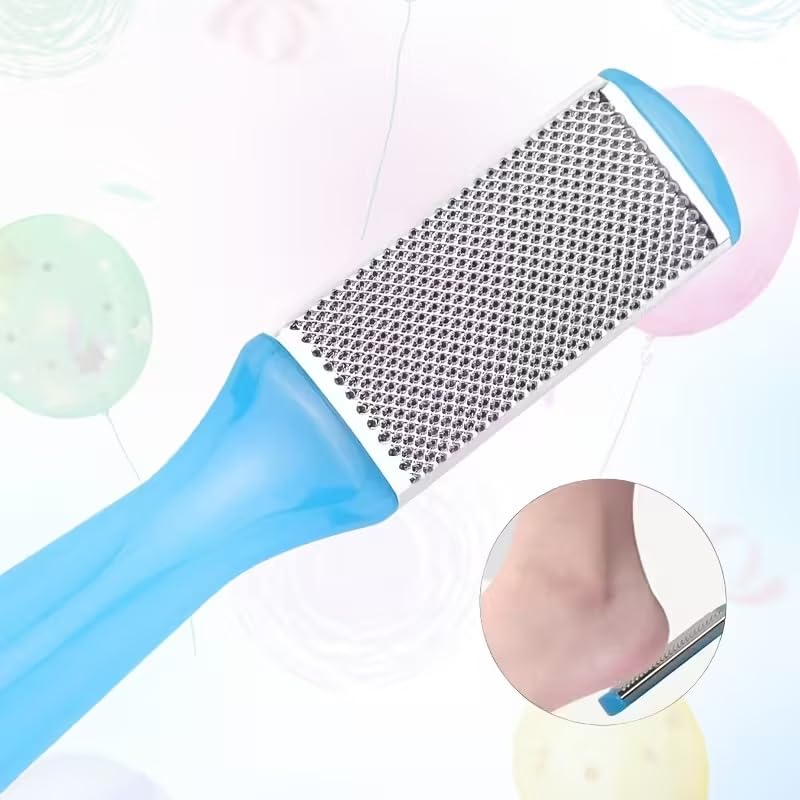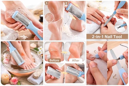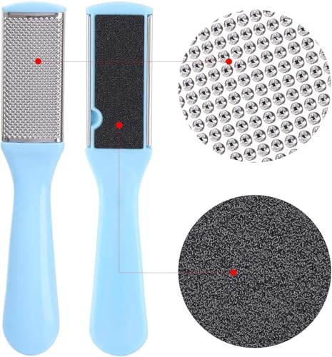 SNS SECRET NAILS SYSTEM - مبرد قدم من الستانلس ستيل لازالة مسامير القدم مع مبرد للاظافر، اداة تقشير القدم مزدوجة الجوانب لازالة الجلد الميت، مكشطة قدم للباديكير واداة صنفرة القدم (ازرق)
