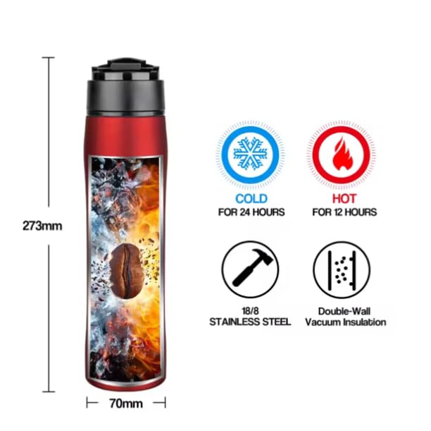 - عزل مزدوج الجدار: هيكل ممتاز من الستانلس ستيل مع تصميم مزدوج الجدار يحافظ على قهوتك ساخنة وخارجية باردة الملمس