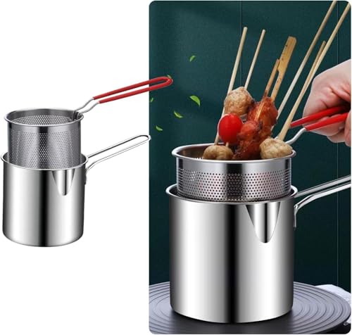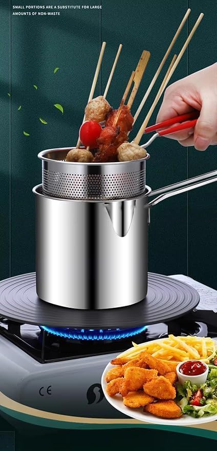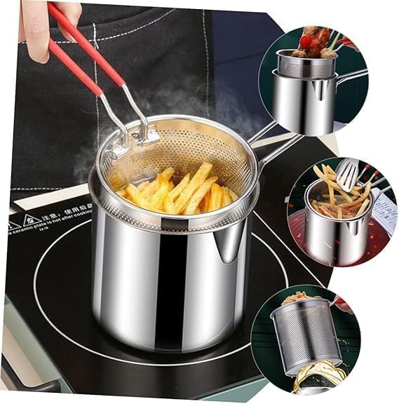 Generic - سلة قلي من فولاذ مقاوم للصدأ بمقبض سيليكون - مصفاة تصريف الزيت 1.4 لتر للقلي العميق - جودة مستوردة للبطاطس المقرمشة والدجاج والأسماك والجمبري والمزيد