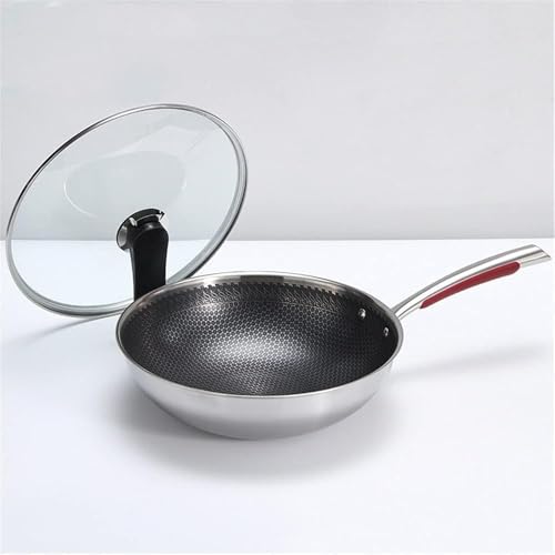 Generic - مقلاة من الستانلس ستيل، 32 سم، مراة مصقولة بمقبض وغطاء زجاجي، 32 سم، مراة مصقولة بمقبض وغطاء زجاجي