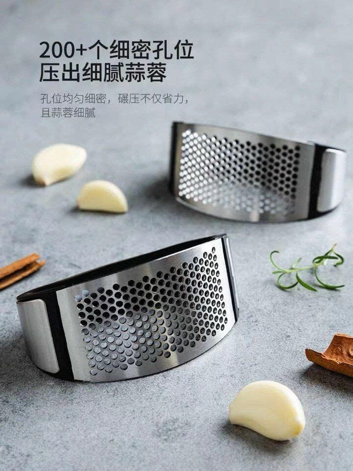 Spaceshoop - هراسة ثوم من الفولاذ المقاوم للصدأ بمقبض من الفولاذ المقاوم للصدأ عالي الجودة لتحضير الثوم بسرعة.
