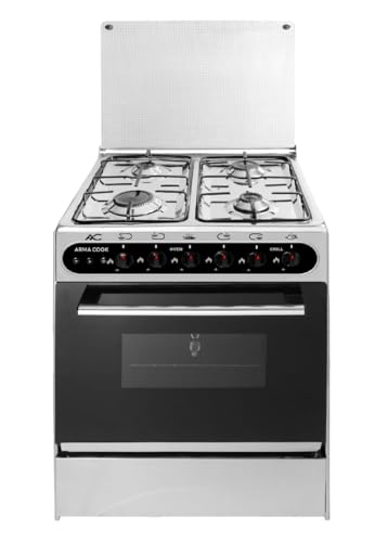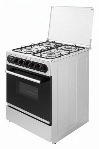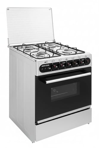 Generic - بوتجاز غاز استانلس ستيل 4 شعلات مع فرن وشواية، 55x55 سم، غطاء زجاجي، إشعال ذاتي، تصميم عصري، ارماكوك