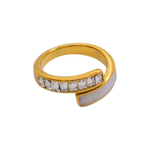 Generic - خاتم للنساء من الستانلس ستيل مزين بعرق اللؤلؤ، مقاس واحد - ذهبي