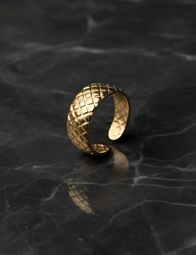Generic - خاتم من الستانلس ستيل بتصميم منسوج ذهبي اللون قابل للتعديل