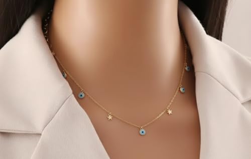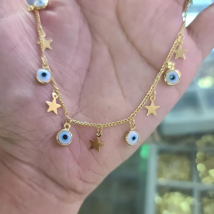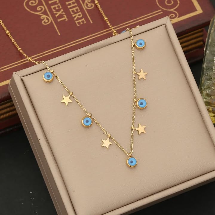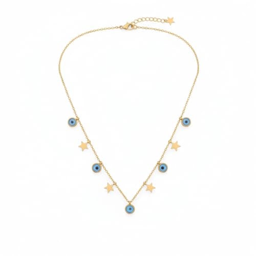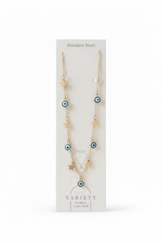 Generic - سلسلة حريمي ستانلس ستيل ذهبي شكل عين زرقاء و نجوم غير قابل للصدأ · تمنحك مظهرًا ساحرًا · ناعمة ومريحة في الارتداء · متعددة الطبقات