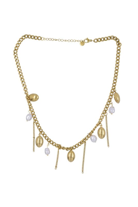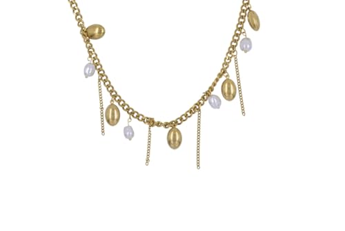 Generic - سلسلة من الستانلس ستيل بلون ذهبي مع لؤلؤ باروك للنساء - ذهبي