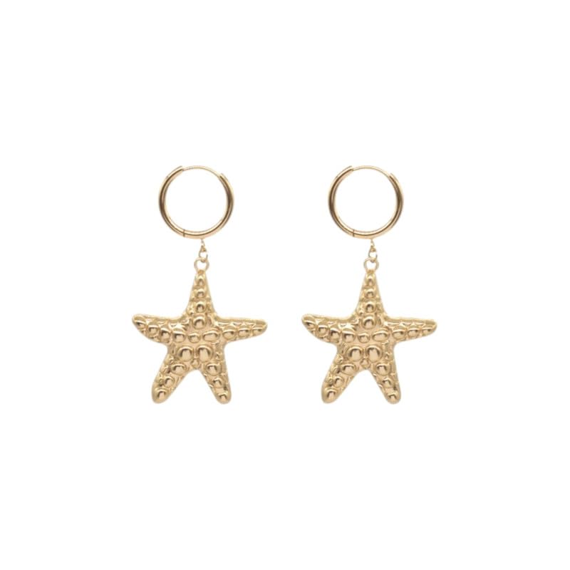 Generic - اقراط حلقية متدلية من الستانلس ستيل بلون ذهبي على شكل نجم البحر للنساء - ذهبي