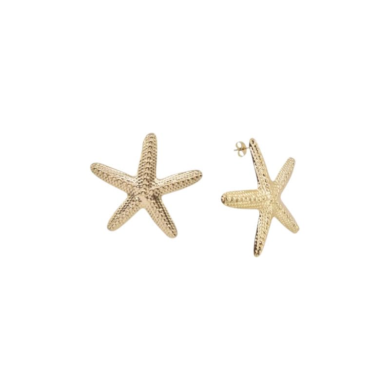 Generic - حلق بريمة من الستانلس ستيل بلون ذهبي مزخرف على شكل نجم البحر للنساء - ذهبي