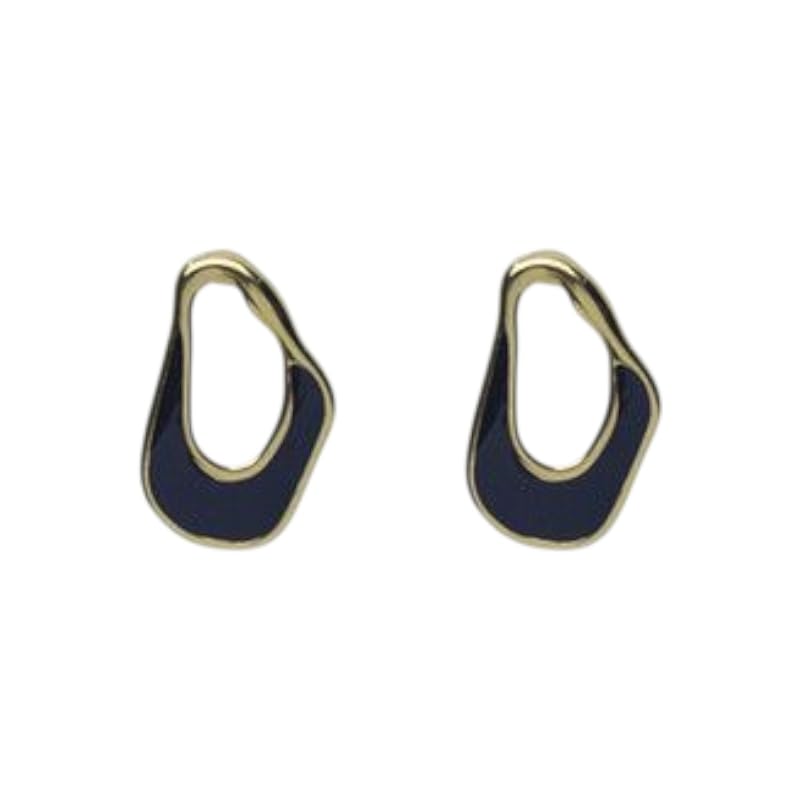 Generic - حلق بريمة ستانلس ستيل ذهبي اللون مع ترصيع مينا للنساء، قطعتين - اسود