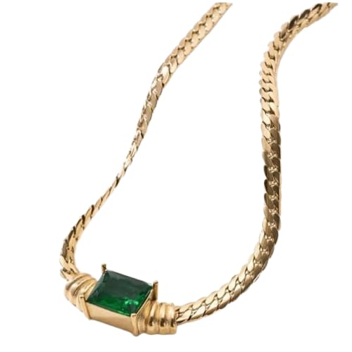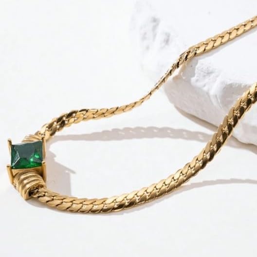 Generic - سلسلة ذهبية من الستانلس ستيل مع حجر الزمرد الكريم، 45 سم