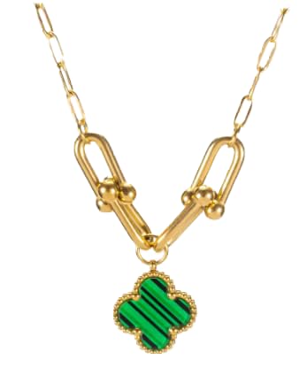 Generic - عقد ذهبي من الستانلس ستيل مع دلاية على شكل ورقة البرسيم الخضراء