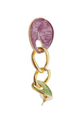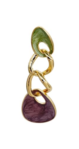 Generic - اقراط حلقية بيضاوية مطلية بالمينا من الستانلس ستيل بلون اخضر وارجواني للنساء - متعددة الالوان