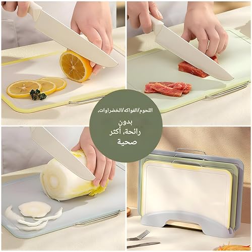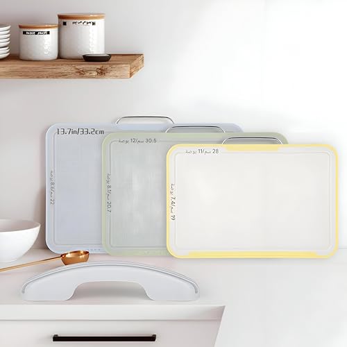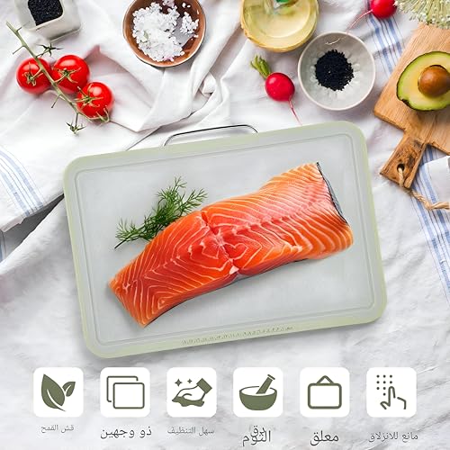 - مجموعة مرمزة بالألوان المكونة من ثلاثة ألواح مقاس 33.2 × 22 سم تتيح لك تخصيص كل منها للحوم أو الأسماك أو الخضار، مما يمنع التلوث المتبادل ويحافظ على سلامة الطعام عالية.