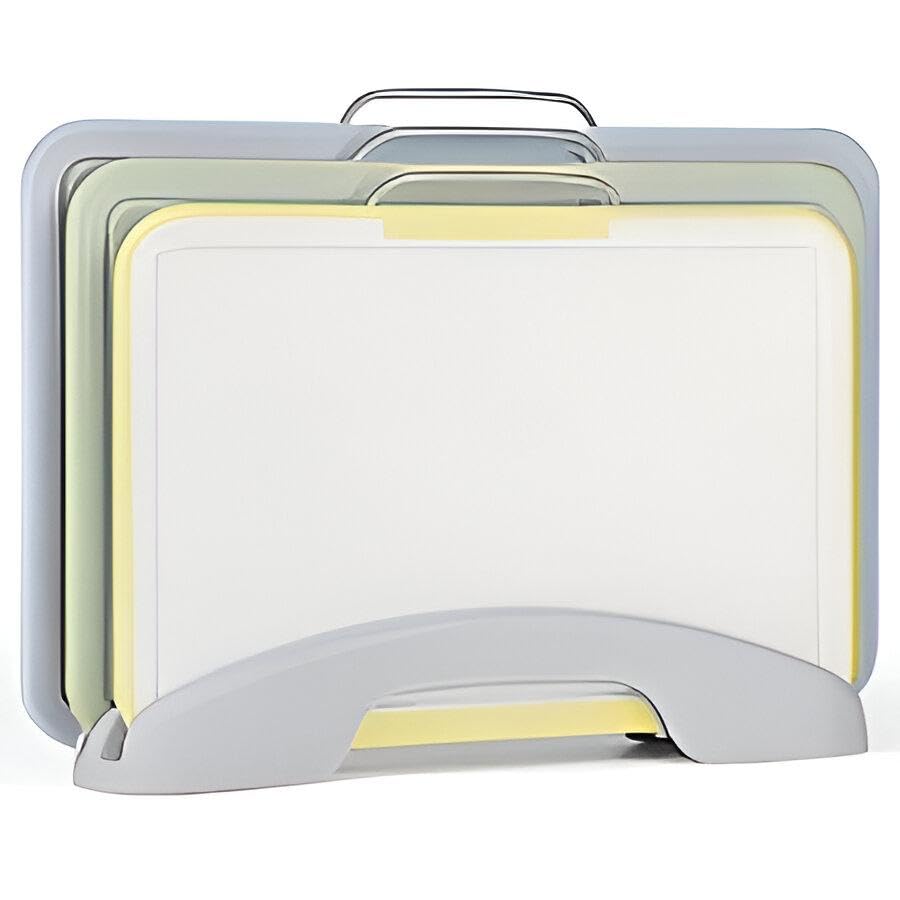 - رف تخزين عمودي مدمج يحمل جميع الألواح الثلاثة معًا، ويحرر مساحة سطح الطاولة، ويتميز بقاعدة مجوفة للتصريف السريع والتجفيف بالهواء.