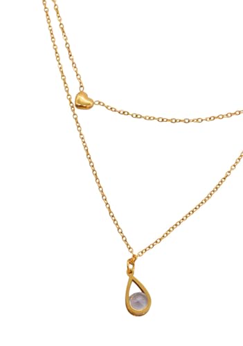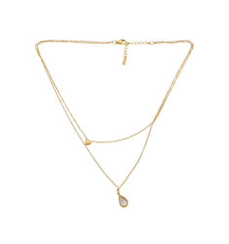 Generic - قلادة مزدوجة الطبقات بدلاية على شكل قلب ودمعة من الستانلس ستيل للنساء - ذهبي