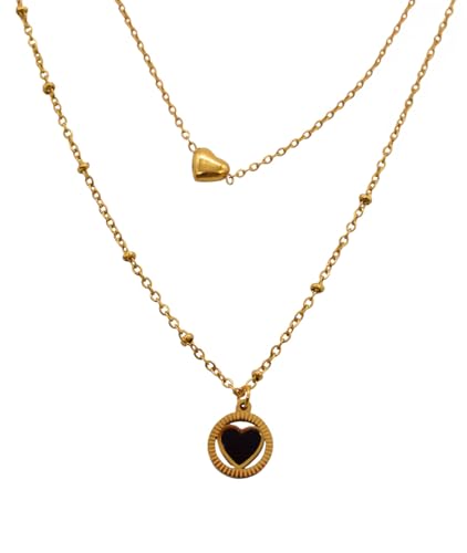 Generic - قلادة بدلاية على شكل قلب من الستانلس ستيل وسلسلة خرز مزدوجة الطبقات للنساء - ذهبي