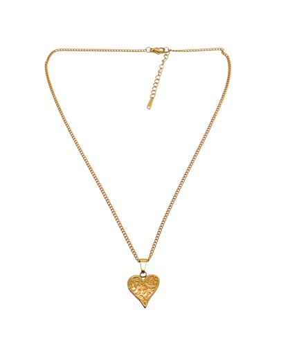 Generic - عقد بقلادة على شكل قلب من الستانلس ستيل للنساء - ذهبي فا