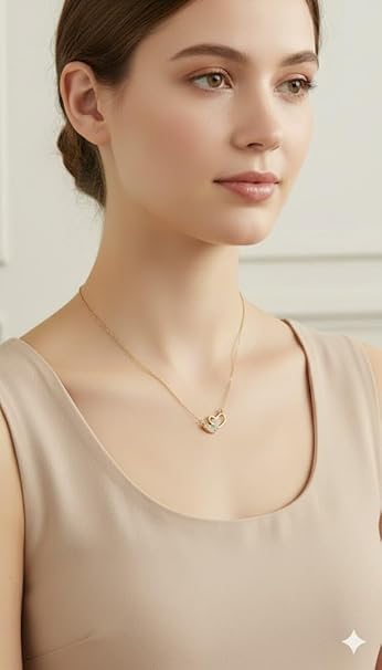 Generic - عقد بقلادة على شكل قلب من الستانلس ستيل، مطلي بالذهب، مشبك بخطاف وعيون، مقاس واحد