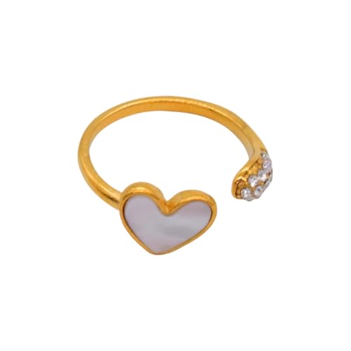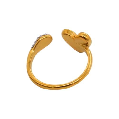 Generic - خاتم للنساء على شكل قلب من الستانلس ستيل، مقاس واحد - ذهبي