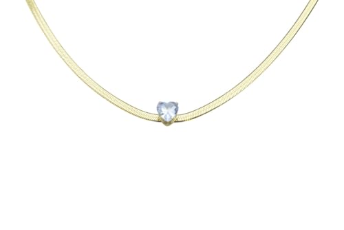 Generic - عقد ضيق من الستانلس ستيل بتصميم متعرج مع احجار كريمة على شكل قلب للنساء - ذهبي