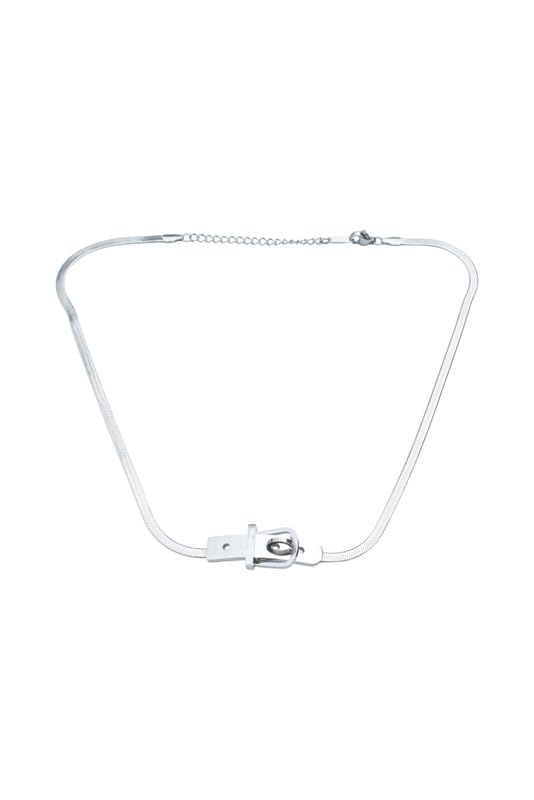 Generic - عقد متعرج من الستانلس ستيل مع دلاية بابزيم حزام للنساء - فضي