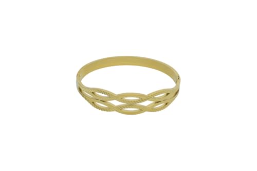 Generic - سوار حلقي بمفصلات من الستانلس ستيل بتصميم مضفر مخرم للنساء - ذهبي