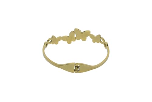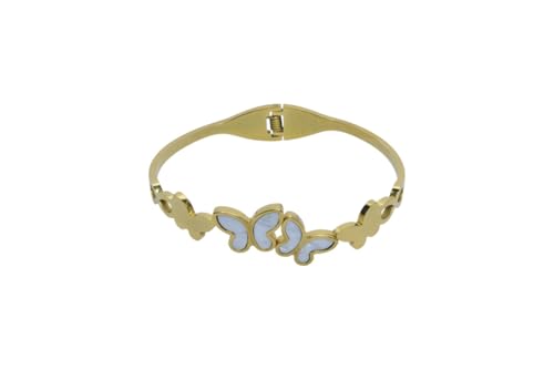 Generic - سوار حلقي بمفصلات من الستانلس ستيل مع لمسات على شكل فراشة بيضاء للنساء - ذهبي