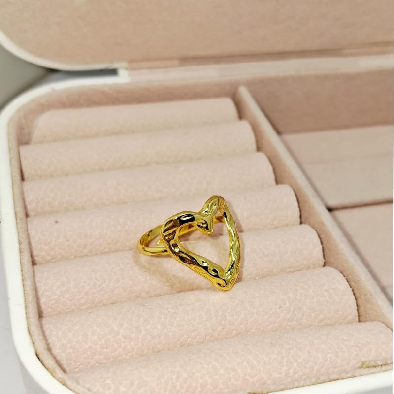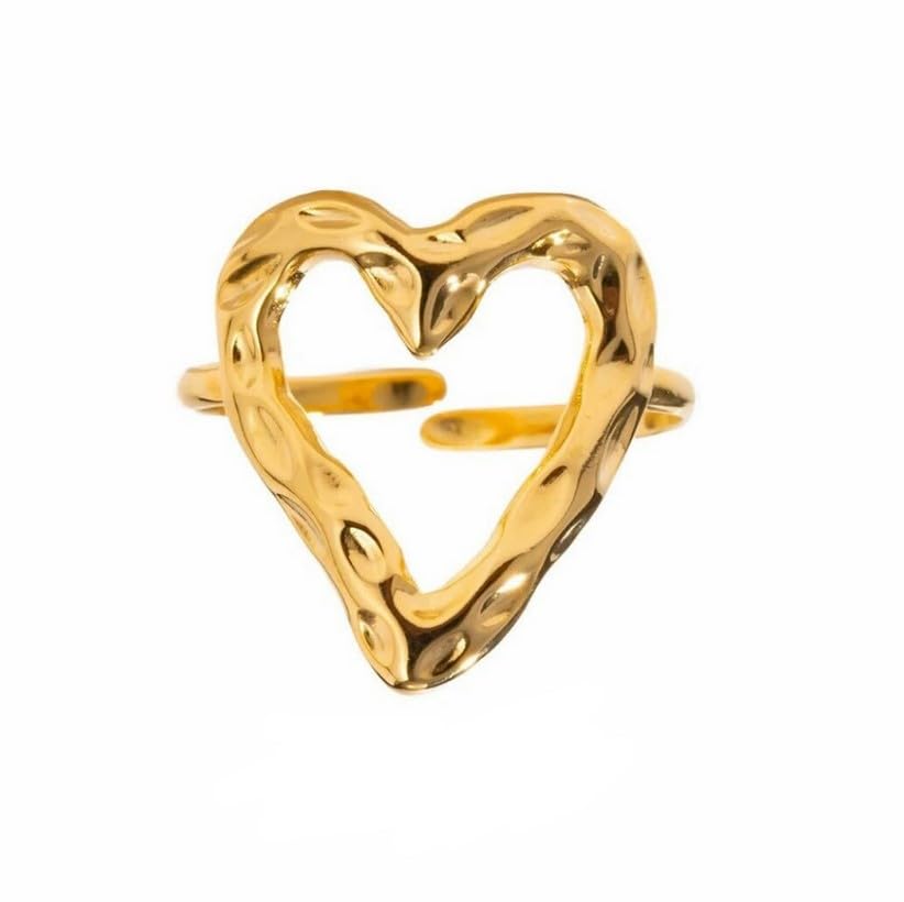 Generic - خاتم استانلس مفرغ على شكل قلب بتصميم مطروق, ( قطعه واحده بتصميم قلب مفرغ مطروق, مقاس فري سايز)--من رنا ستور