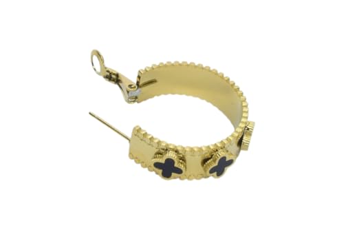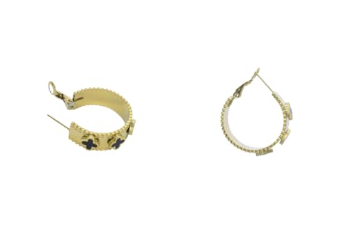 Generic - اقراط حلقية من الستانلس ستيل مع لمسات برسيم للنساء - ذهبي