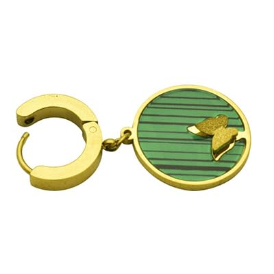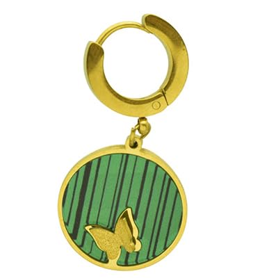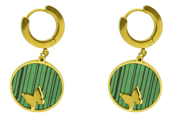 Generic - اقراط حلقية من الستانلس ستيل مع تعليقة خضراء مستوحاة من الملكيت وفراشة ذهبية للنساء - ذهبي